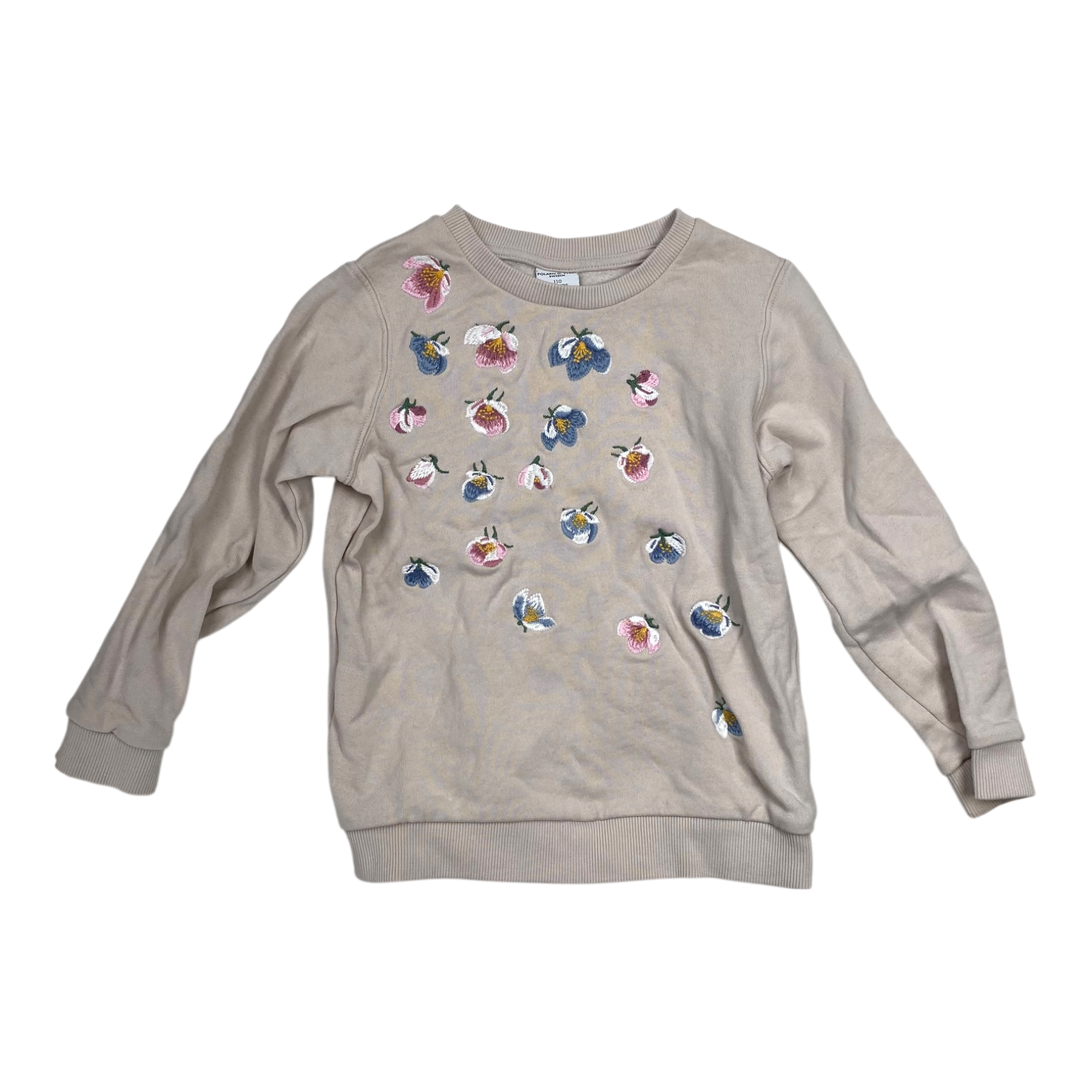 Polarn O. Pyret sweat shirt with embroidered flowers in the front.