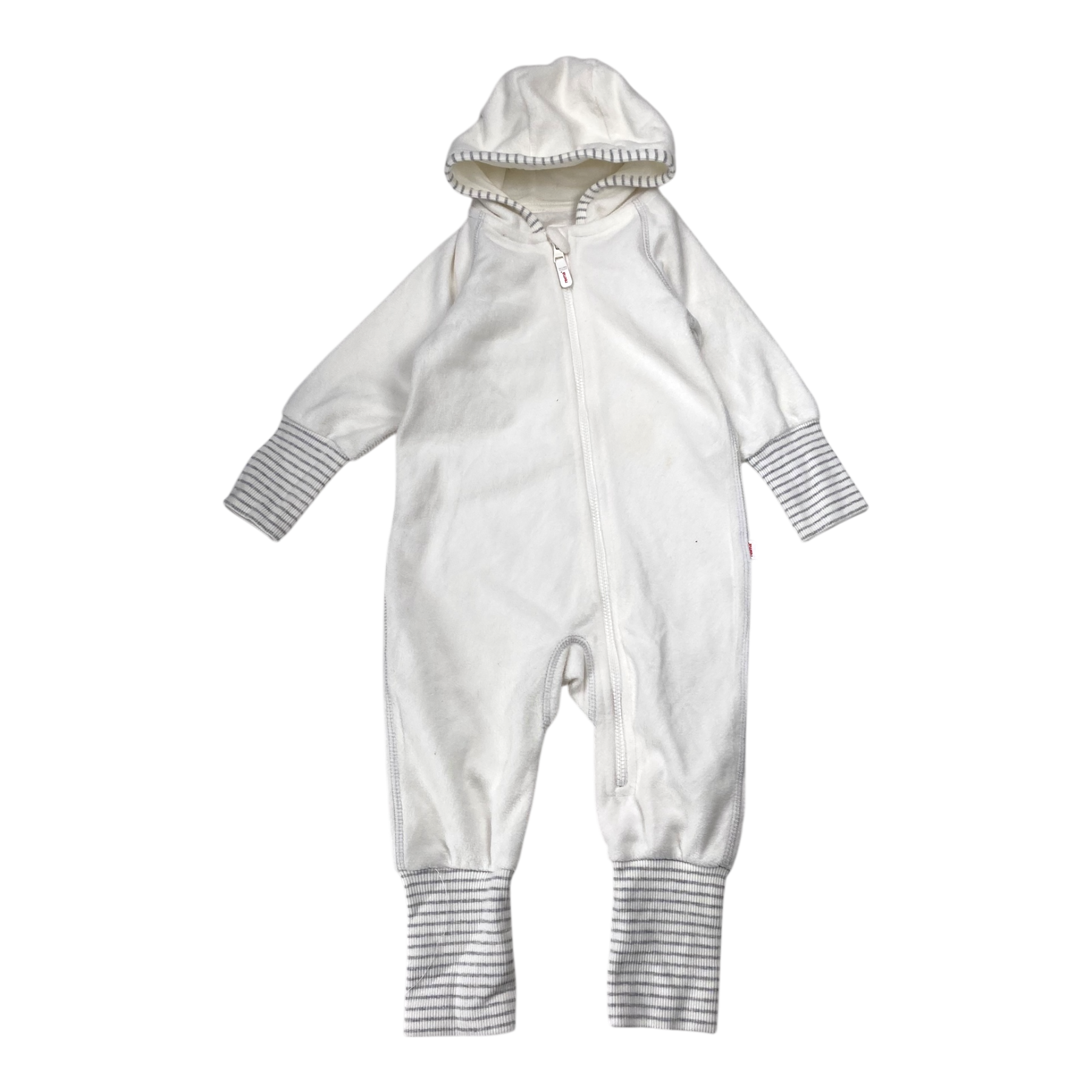Reima kid's hooded mid-layer overall with a zipper long closure for easy dressing. The item has a stain.