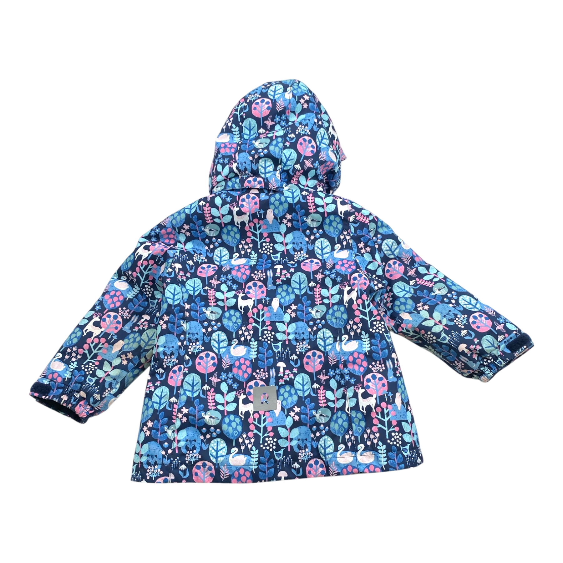 Reima Kuhmoinen winter jacket with detachable hood, adjustable cuffs and zipper pockets. Sealed seams and the fabric is originally waterproof, up to 10,000mm water column.