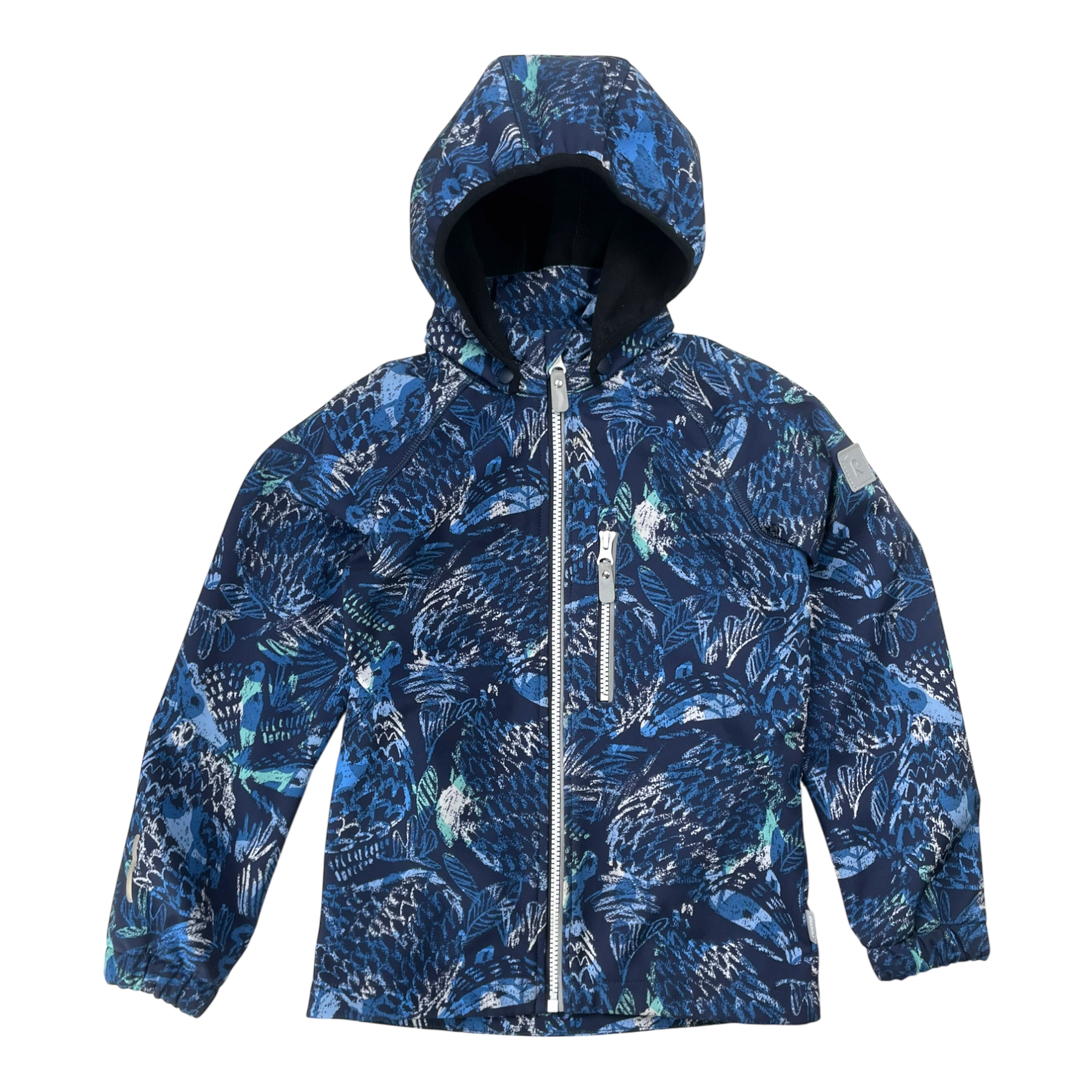 Reima Vantti softshell midseason jacket with zip pocket and zip closure. In this item the hood is missing. The material is originally waterproof up to 10,000mm water column and windproof. The soft fleece on the reverse not only feels nice against the skin but warms too.