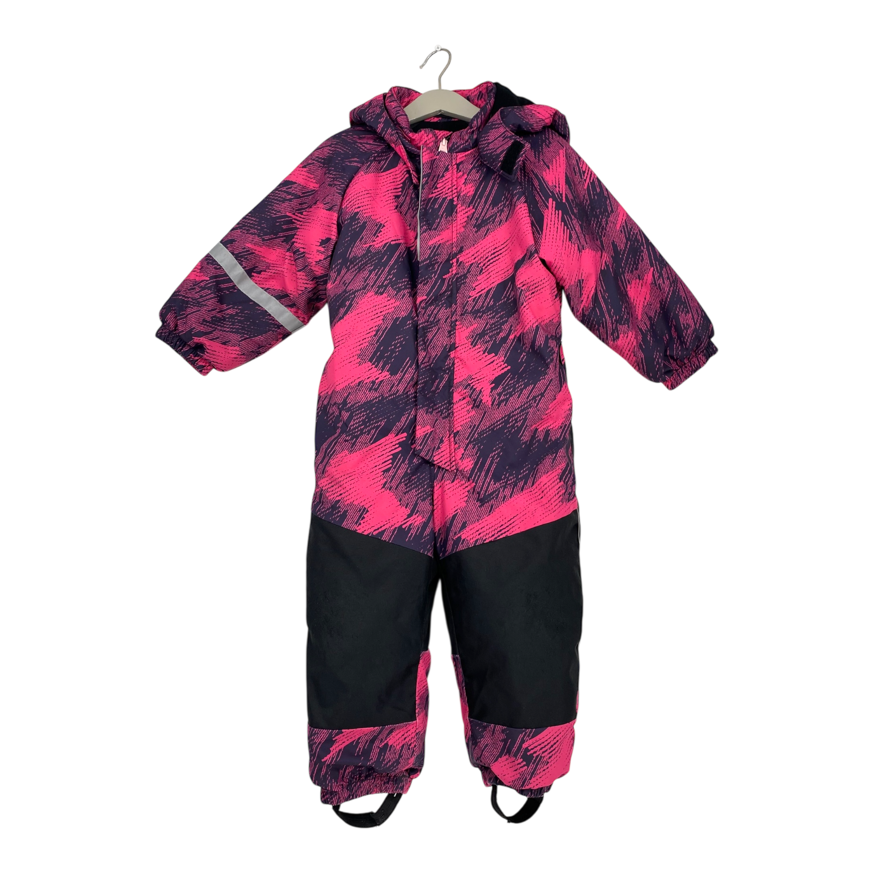 Reima winter overall has a removable hood, long zipper closure, and foot loops. Fabric is originally waterproof to 10,000 water column,.