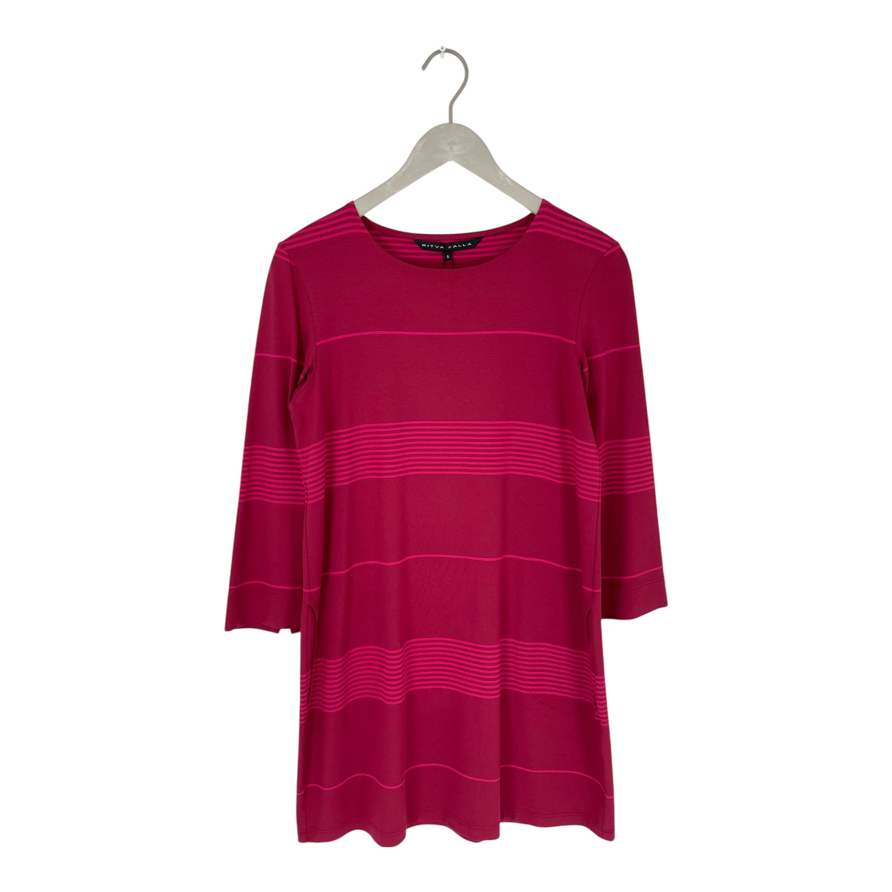 Ritva Falla Selja tricot dress with wide round neckline and side pockets.