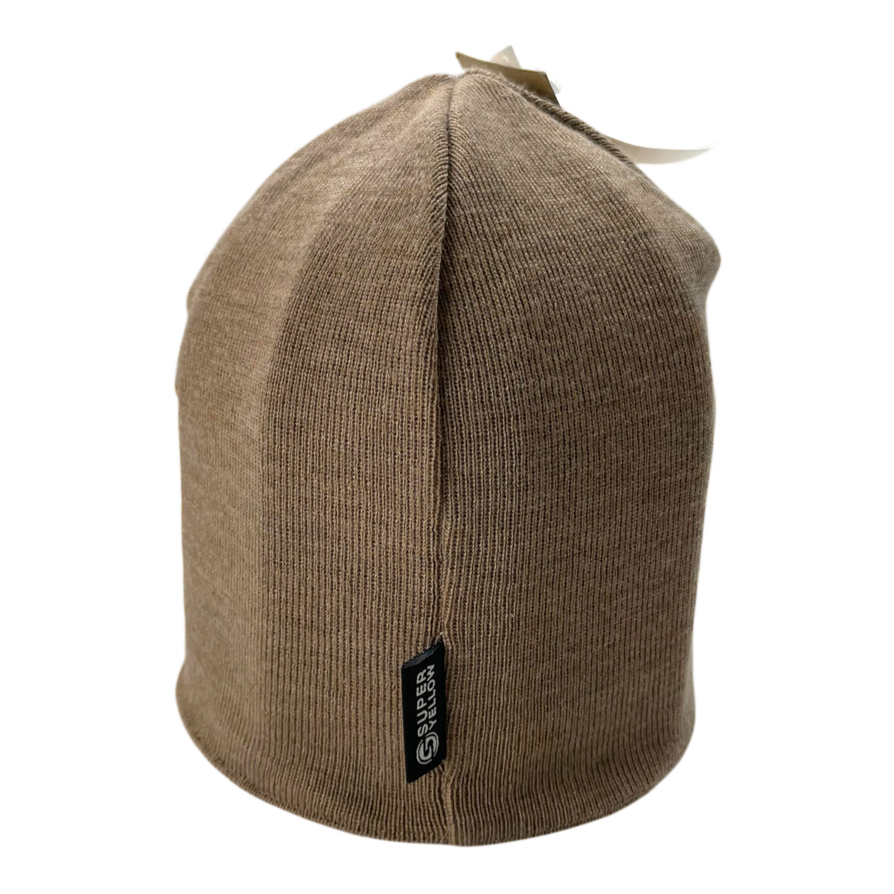 Superyellow adults' Saana merino wool beanie. All Superyellow merino wool beanies are one size and fit for both men and women.