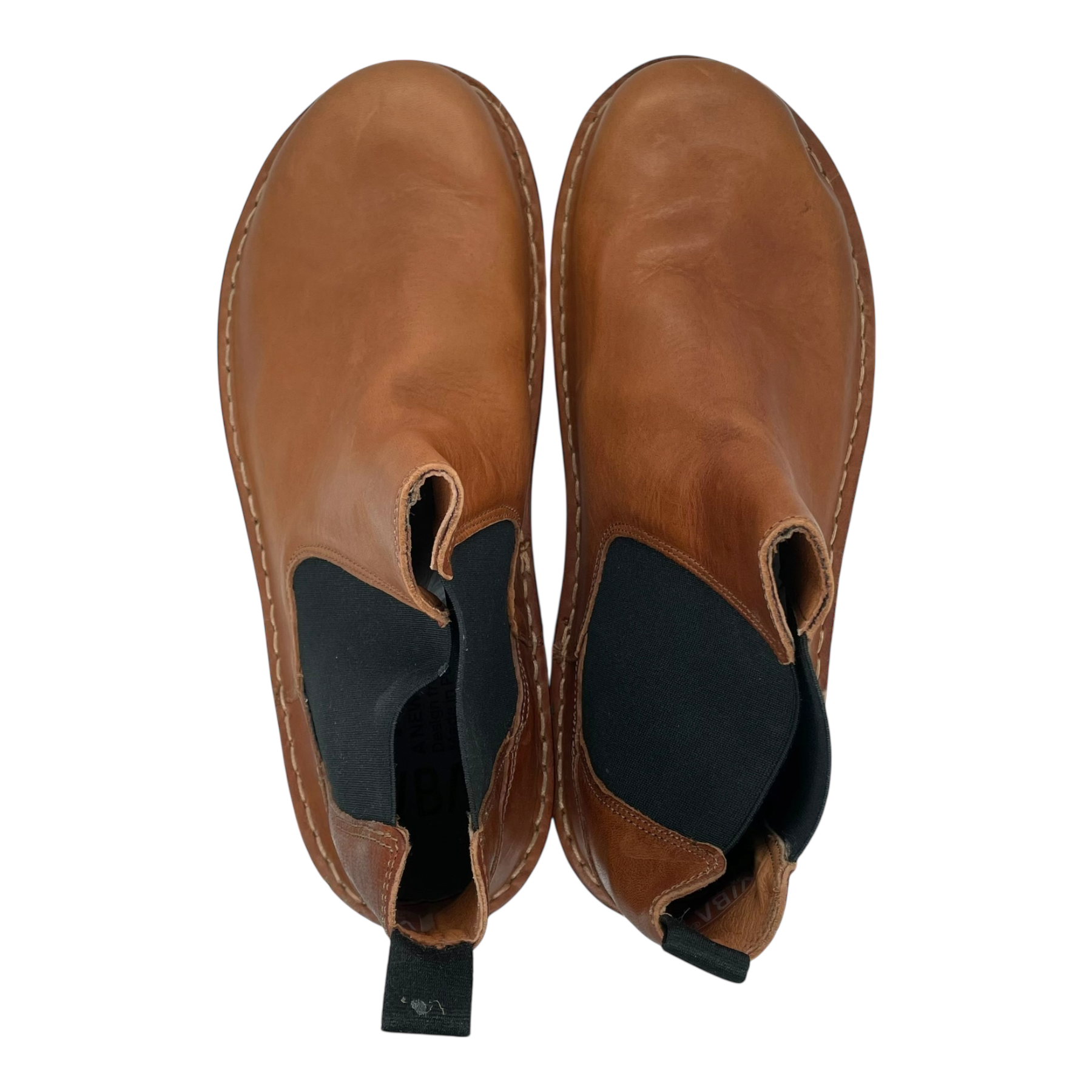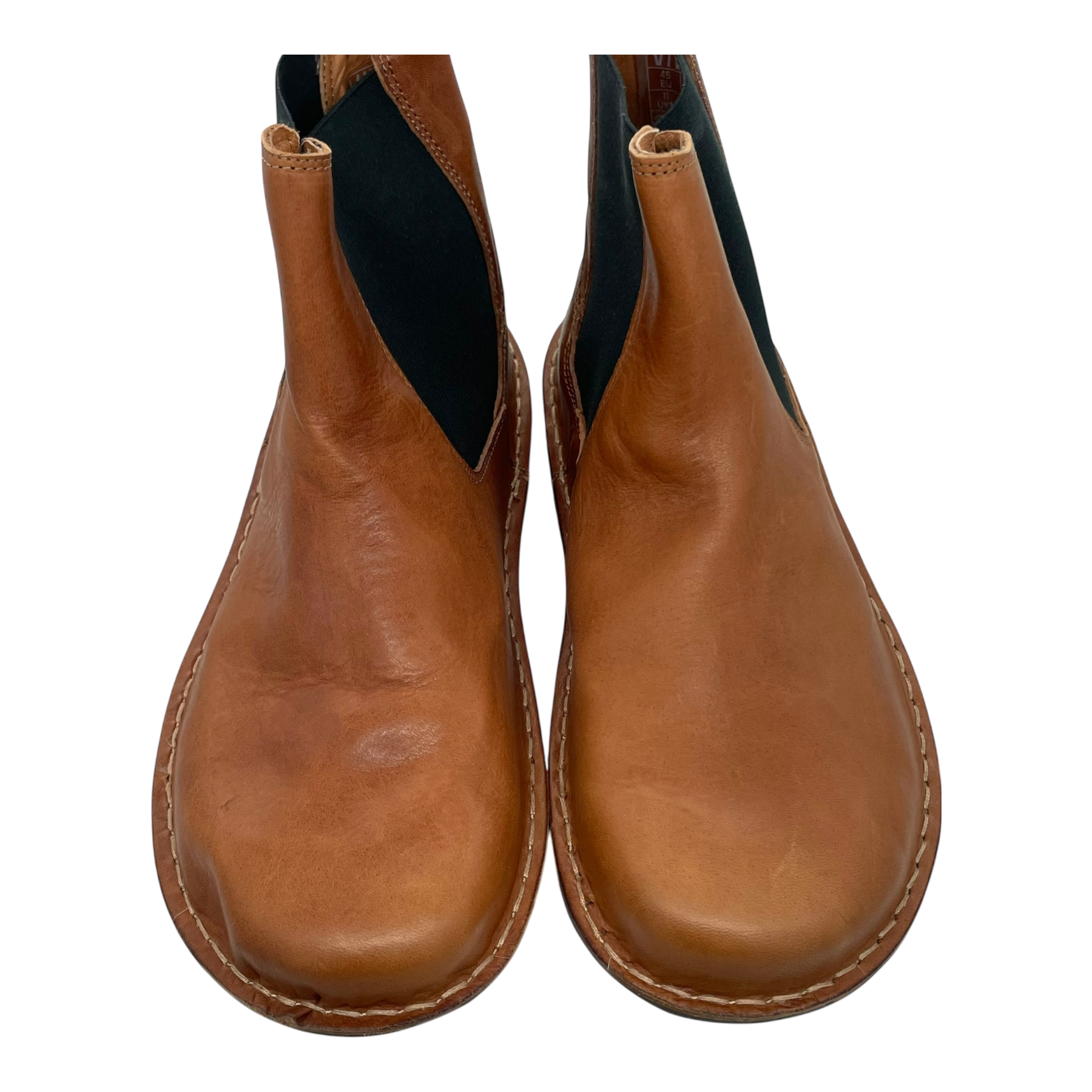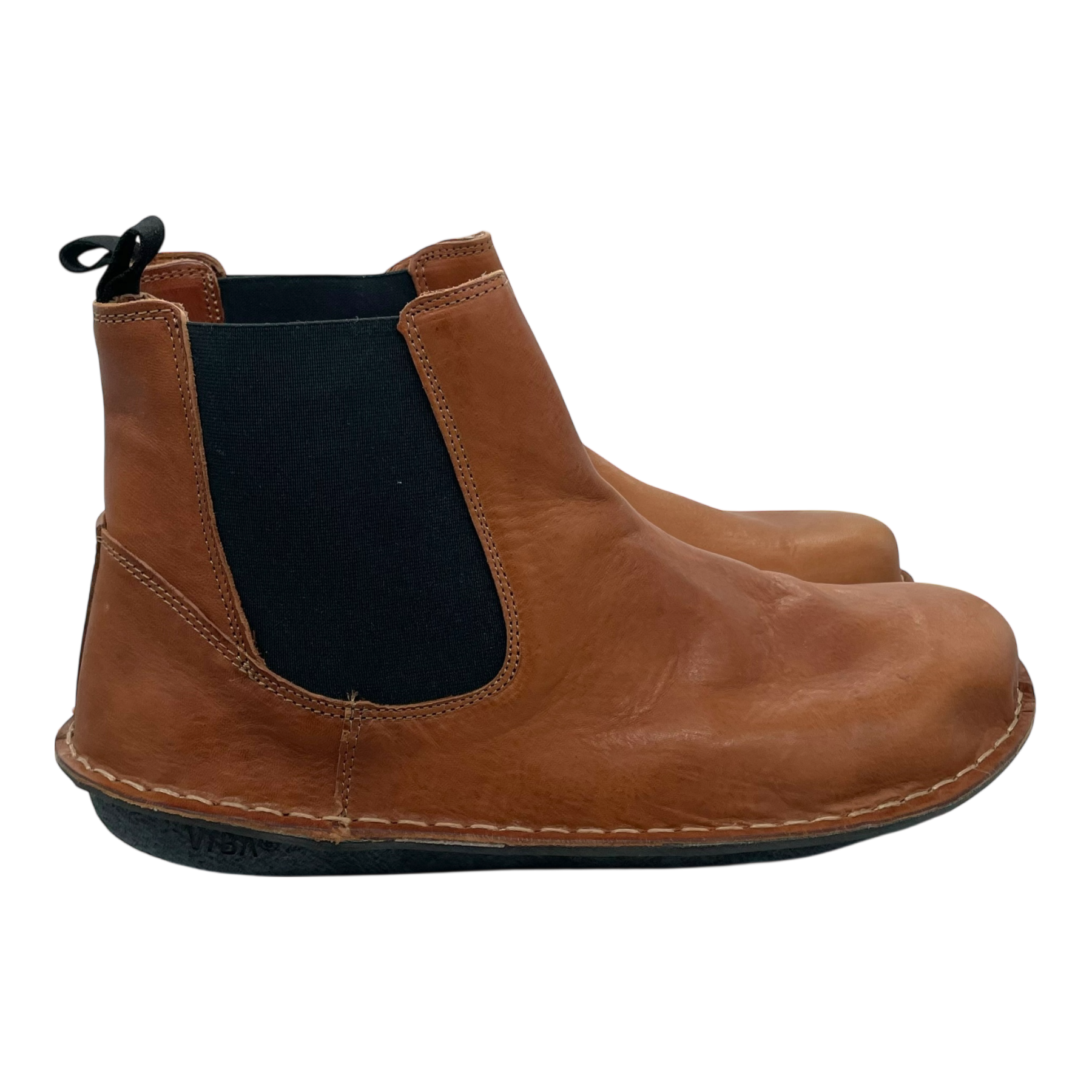 VIBAe Helsinki leather boots. The HELSINKI boot from VIBAe is made from premium vegetable-tanned leather. These year-around unisex boots are made from soft leather and come with a leather pull and large elastic gore on either side.